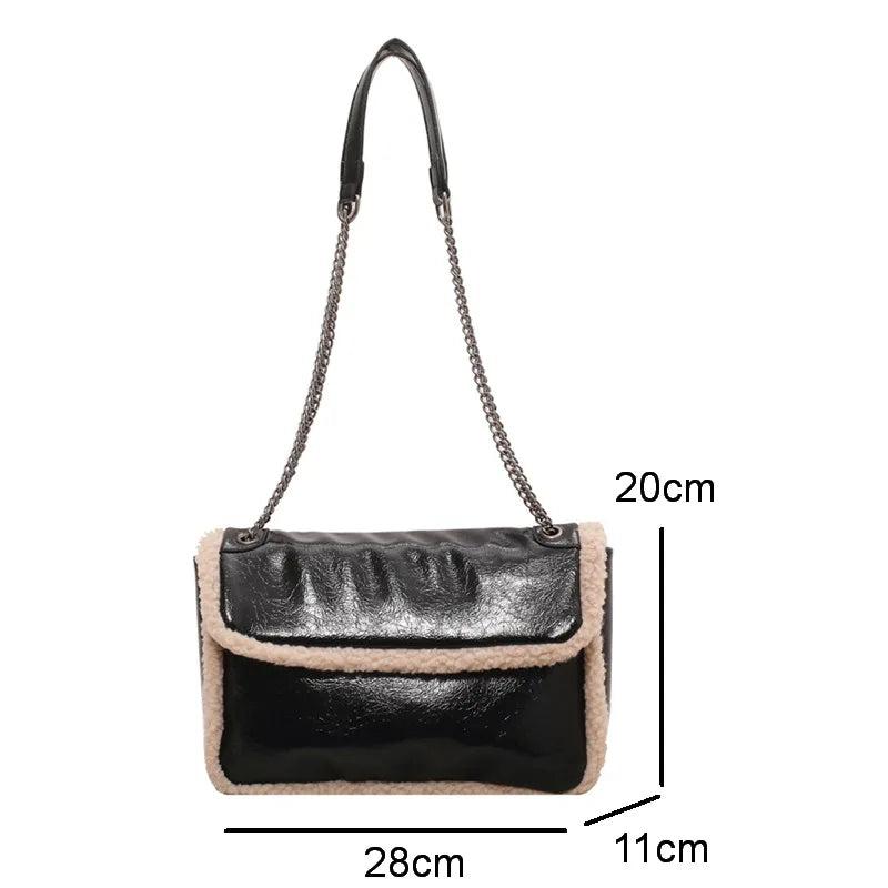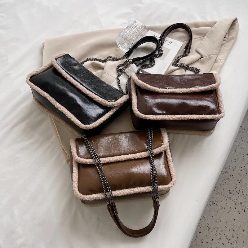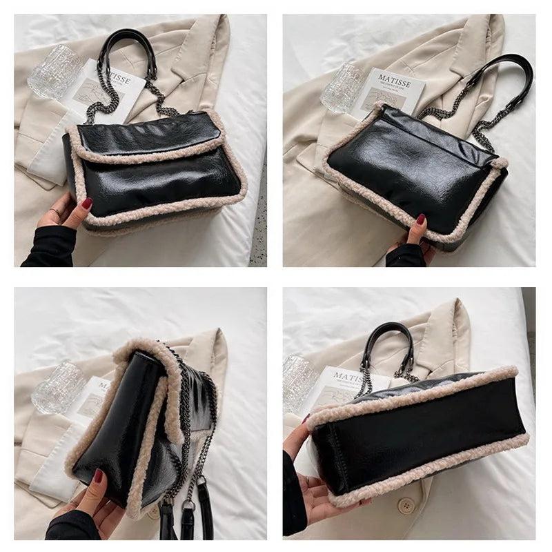 Vintage Oil Wax Leather Shoulder Bag Lamb Wool Messenger Chain Bag HPS1272