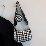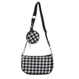 Vintage Plaid Shoulder Bags with Mini Round Purse Pendant