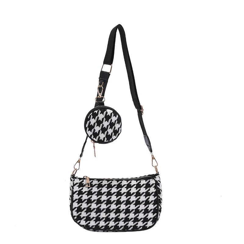 Vintage Plaid Shoulder Bags with Mini Round Purse Pendant 2pcs