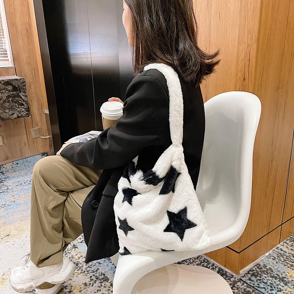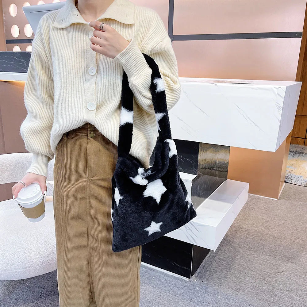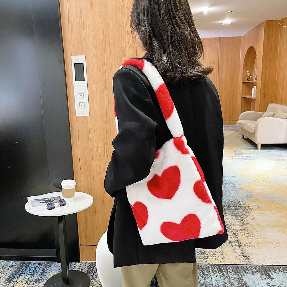 Vintage Plush Flower Shoulder Bag Chain Purse Winter Casual Large Purse
