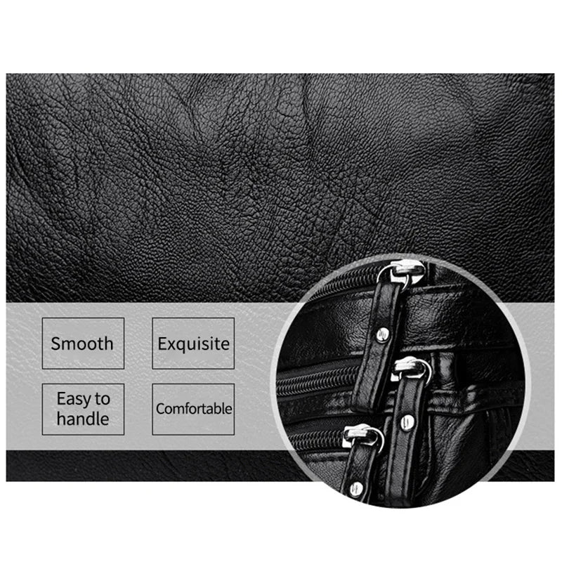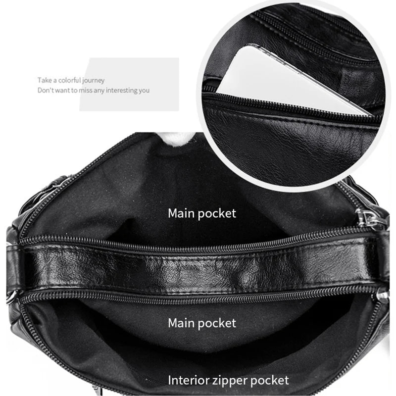 This women's shoulder bag is made of soft leather and features a vintage design with multiple pockets. It is perfect for daily use and is great for carrying essentials.