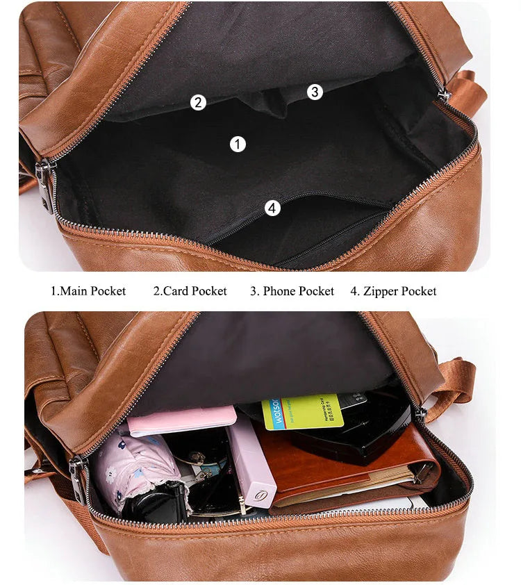 Stay stylish while on the go with this vintage PU leather backpack featuring a convenient earphone hole. Perfect for travel, school, or everyday use.