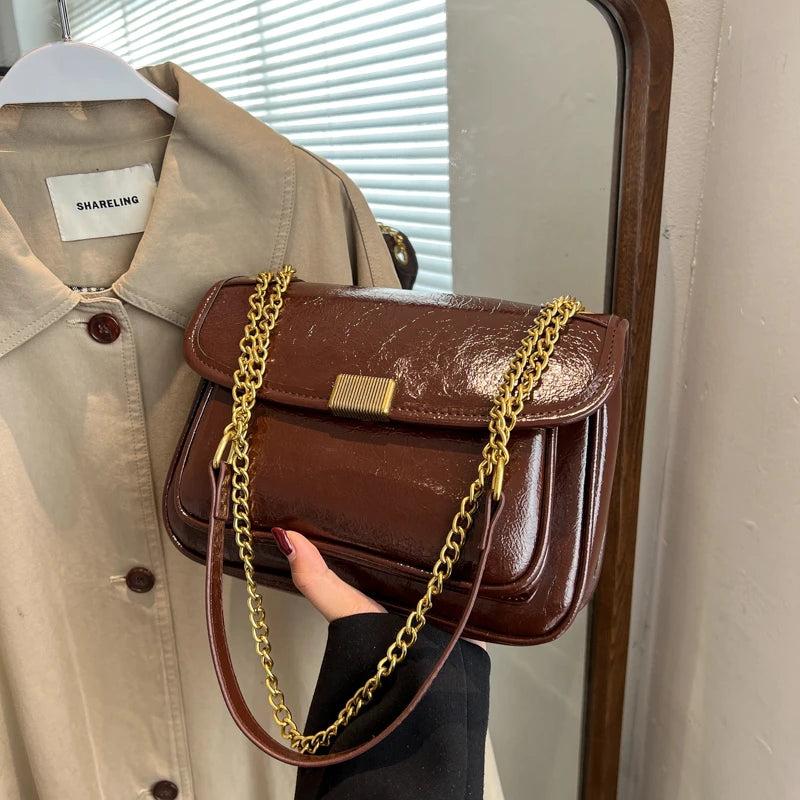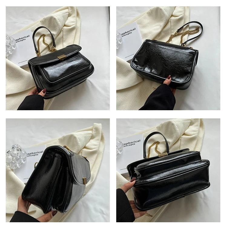 Vintage PU Leather Crossbody Bag with Chains Shoulder Strap