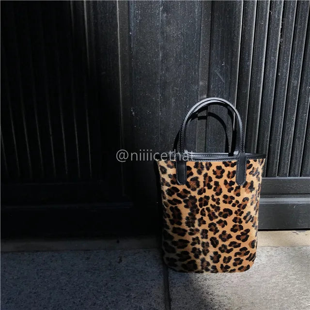 Vintage PU Leather Ladies Clutch Purse Handbags Leopard Mini Bucket Bag