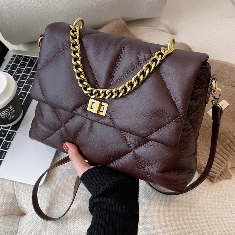 Stay stylish this autumn and winter with this soft leather chain bag. The rhombus design adds a touch of vintage charm to your outfit.