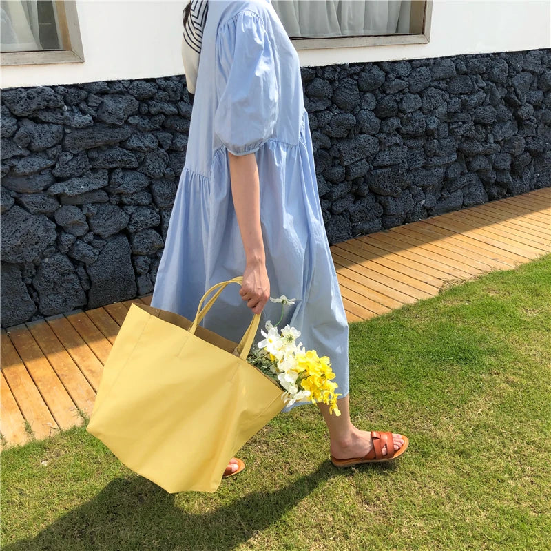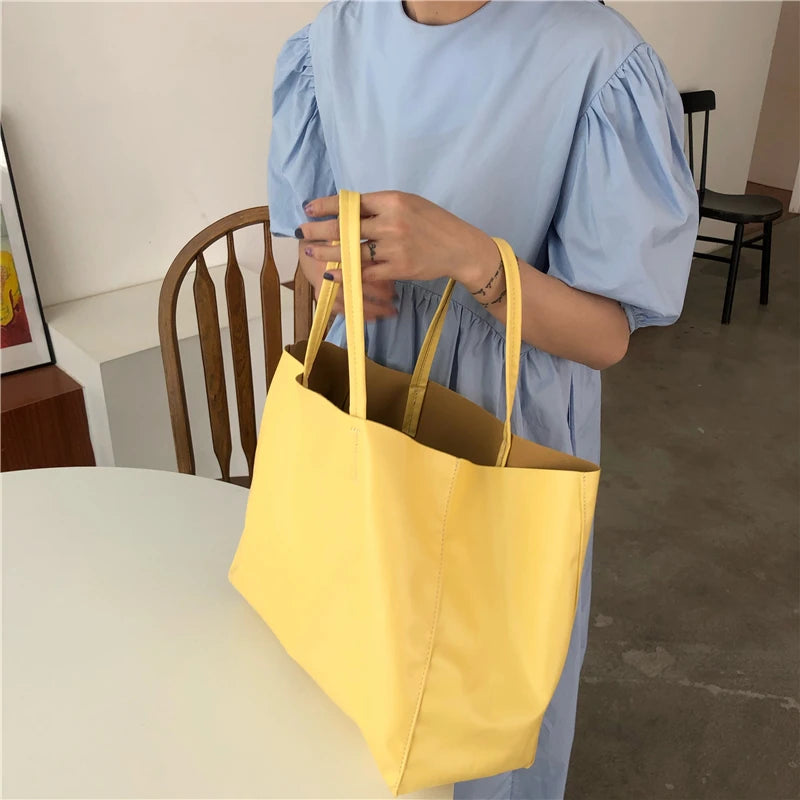 Vintage Soft Leather Women's Handbags Ladies Yellow Large Capacity Tote