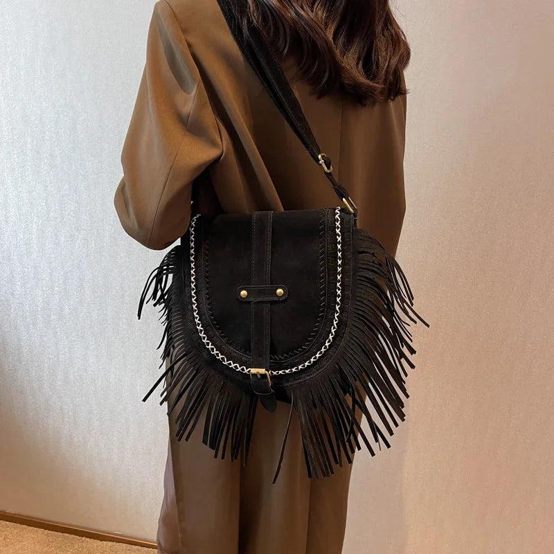 Vintage Tassel Crossbody Saddle Shoulder Bag Brown
