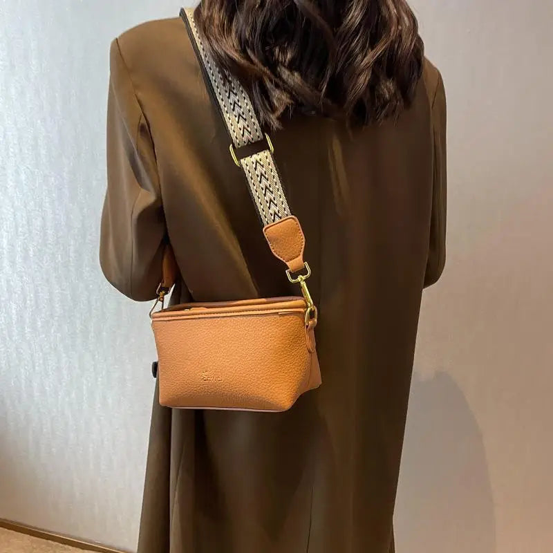 This versatile wide shoulder belt bag is perfect for autumn. It can be used as a single shoulder bag or a crossbody bag, making it a stylish and functional accessory. The square design adds a touch of vintage charm to any outfit.