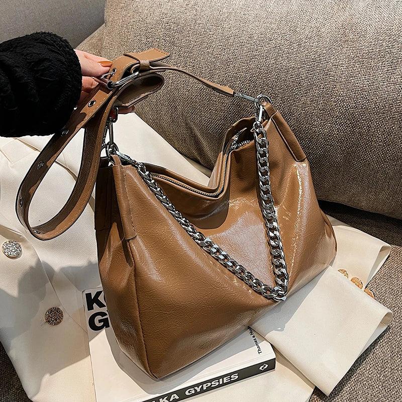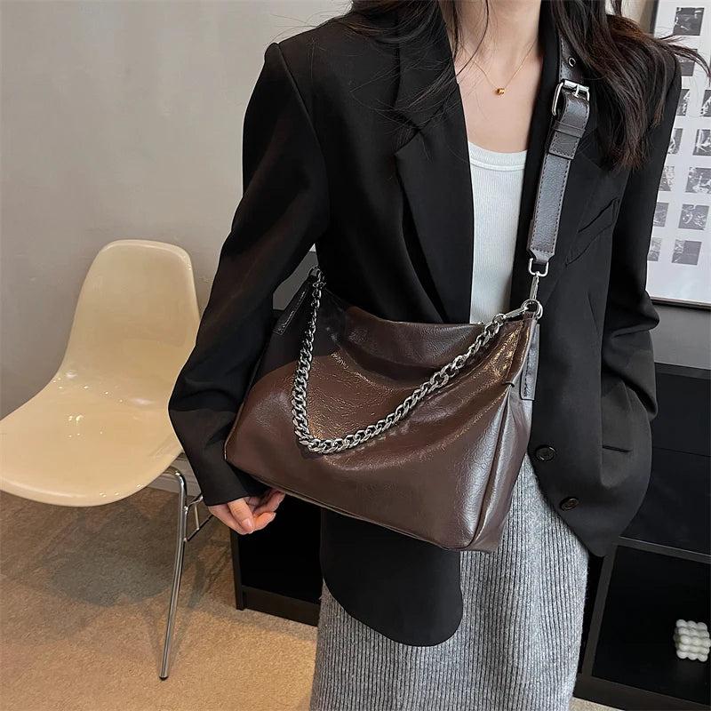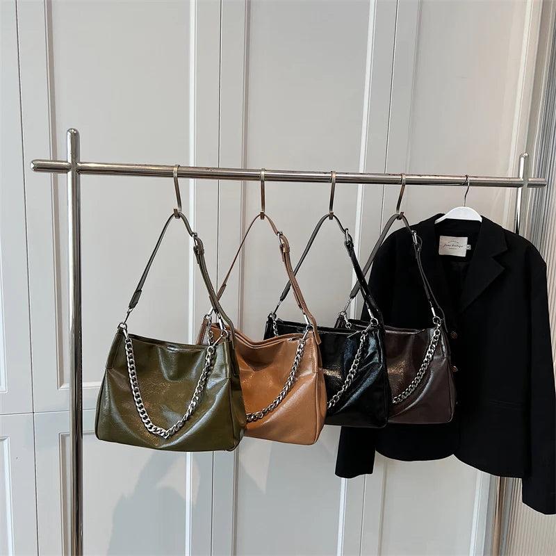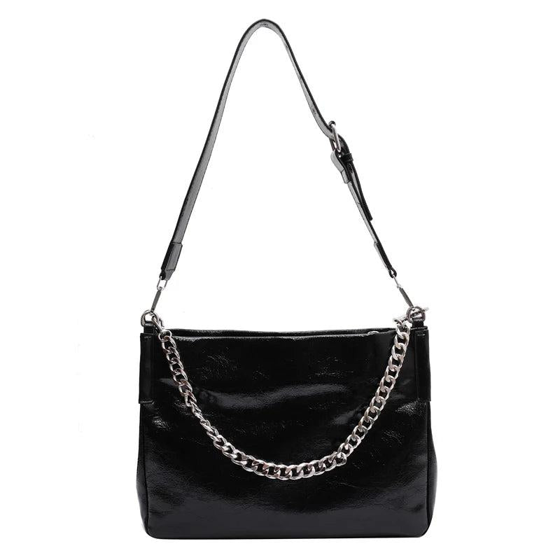 Stay stylish this winter with our PU leather shoulder bag for women. This vintage-inspired bag features a small size and chain strap, perfect for your everyday essentials.