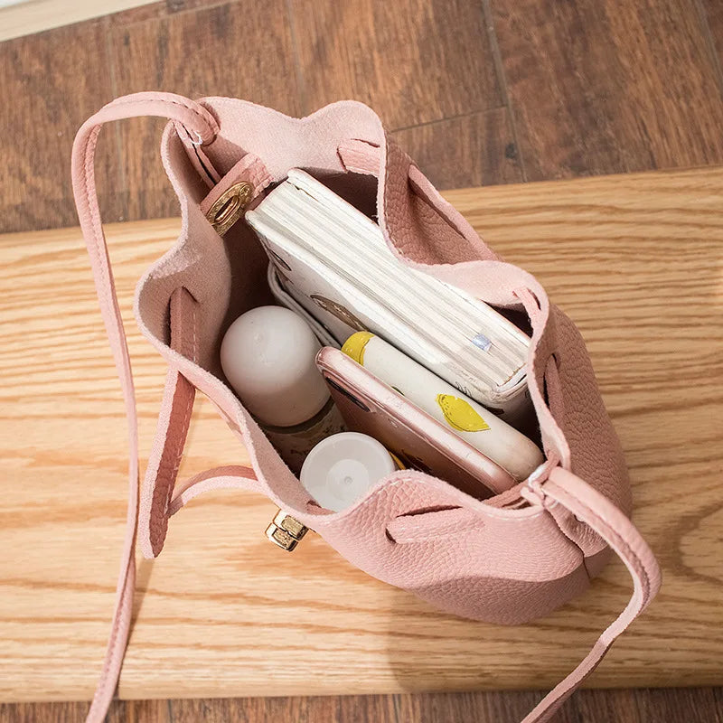 Vintage Women Bucket Bag Lychee Pattern Messenger Bag