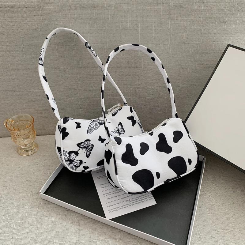 This vintage canvas shoulder bag is perfect for casual outings. Featuring a unique butterfly and cow print design, this bag is both stylish and functional.