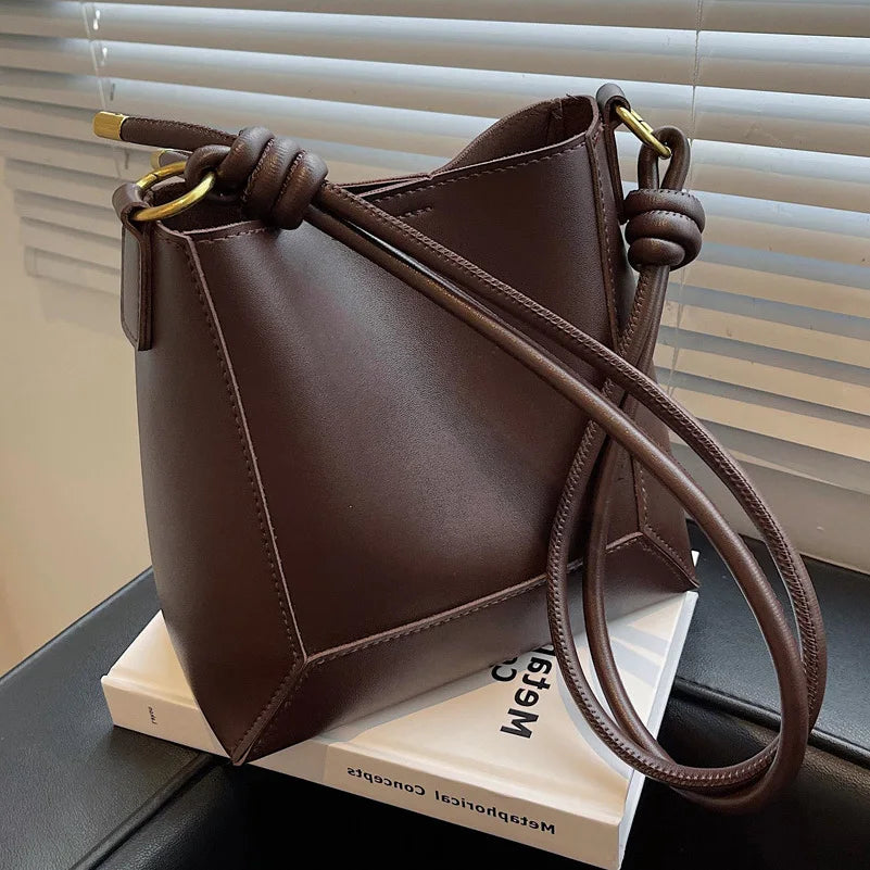This vintage-style women's handbag is made of soft leather and features a spacious bucket design. It is perfect for everyday use and can hold all your essentials.