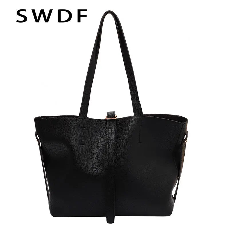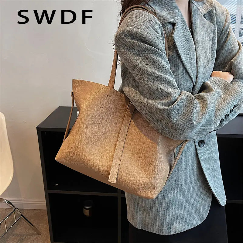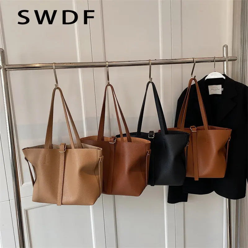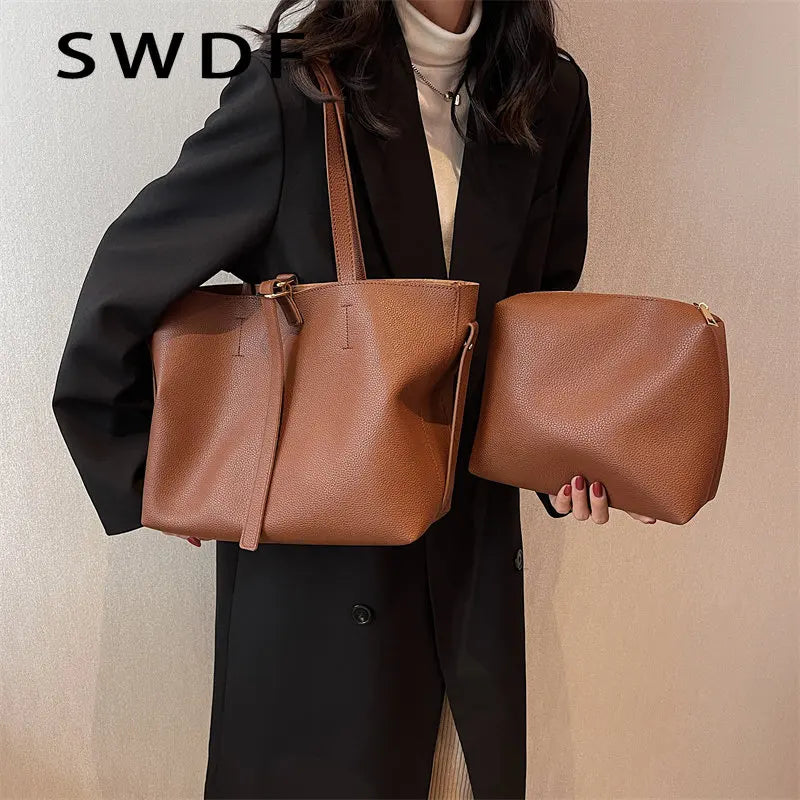 Vintage Women Soft Leather Tote Bags Set - 2pcs