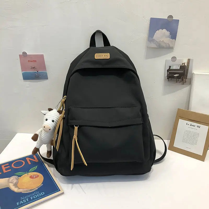 This waterproof nylon school backpack is a large capacity women's backpack perfect for teenagers. It is ideal for travel and school use. The solid design adds a touch of style and durability to this schoolbag.