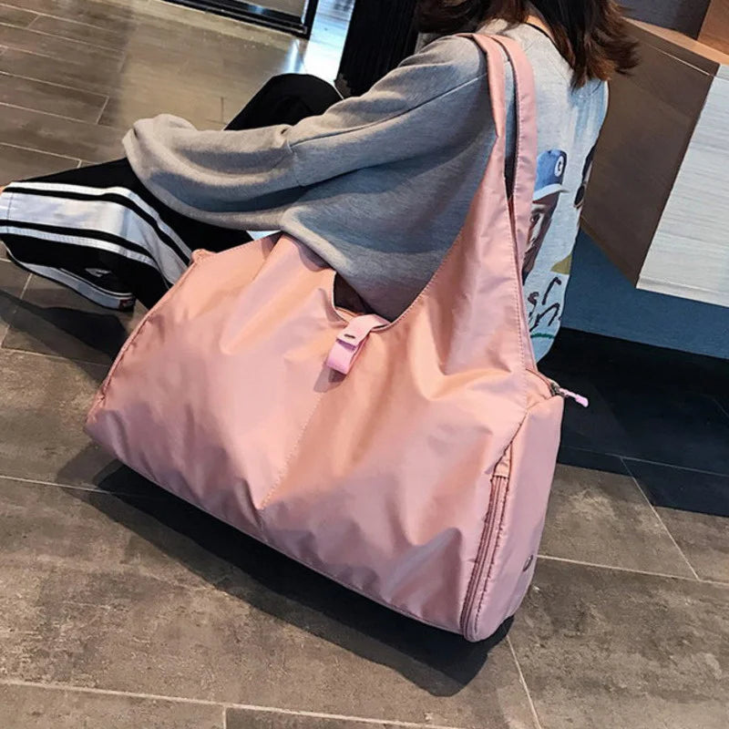 This versatile travel handbag is perfect for outdoor activities, training, fitness, yoga, and more. Made of waterproof nylon material, it includes a convenient shoe compartment.