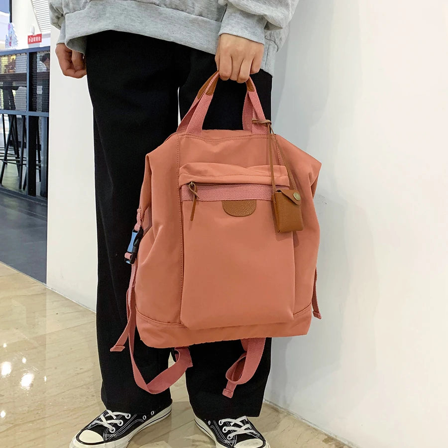 This waterproof nylon women backpack is perfect for carrying all your essentials. It has a large capacity and is ideal for travel or school use. The solid design makes it a versatile choice for teenage girls.