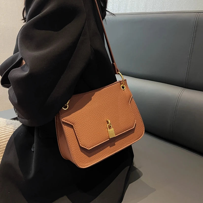 This Personality Western Style Shoulder Bag is a chic accessory featuring a locking buckle design. Perfect for women who want a fashionable underarm bag.