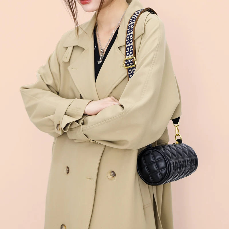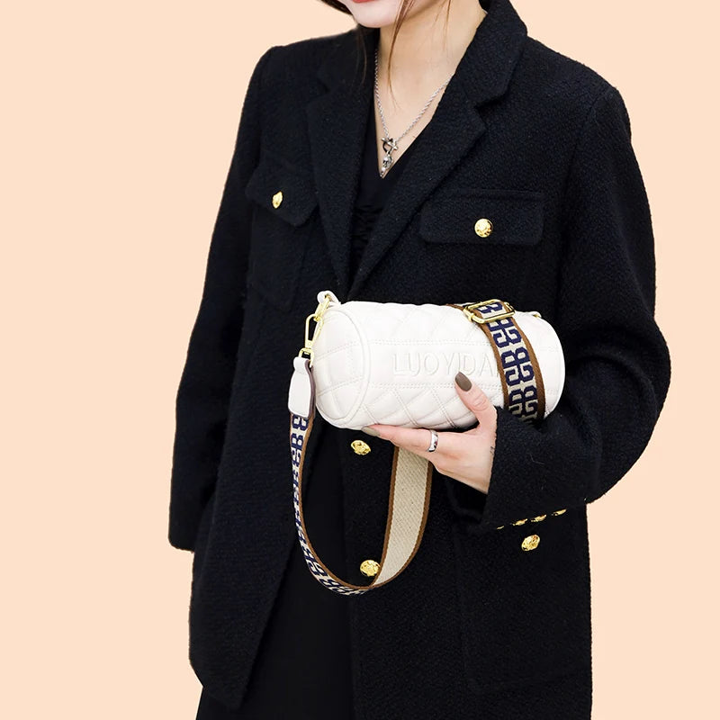 Wide Strap Crossbody Camera Bag Lozenge PU Leather Mini Messenger Bag