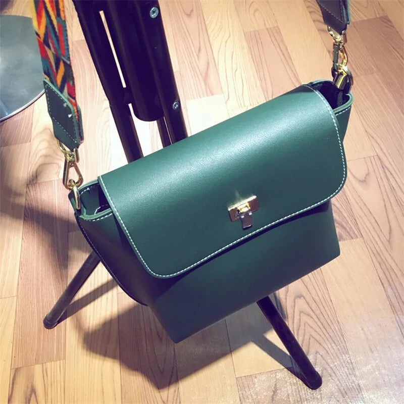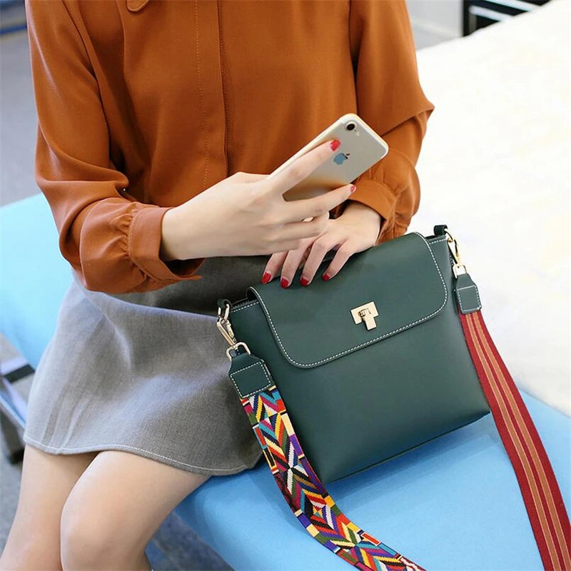 Wide Strap Women PU Leather Shoulder Bag Lady Crossbody Purse Cover Handbag