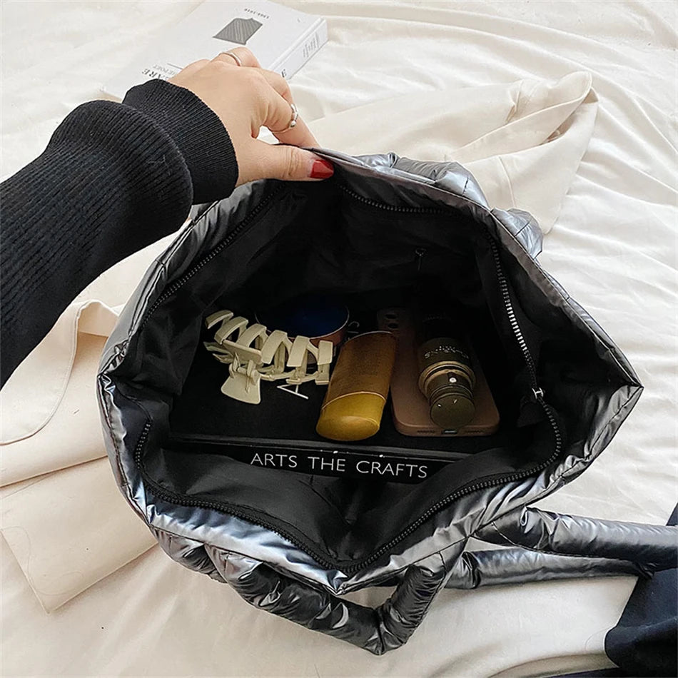 Winter Big Totes Purses Women Shoulder Bags Down Fabric Bag