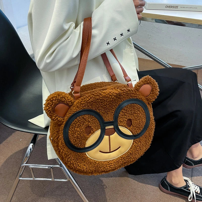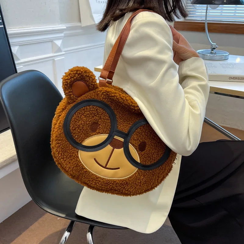 Stay cute and cozy with this plush women's bag featuring an adorable cartoon bear design. Perfect for winter, this large shoulder bag is both stylish and fun.