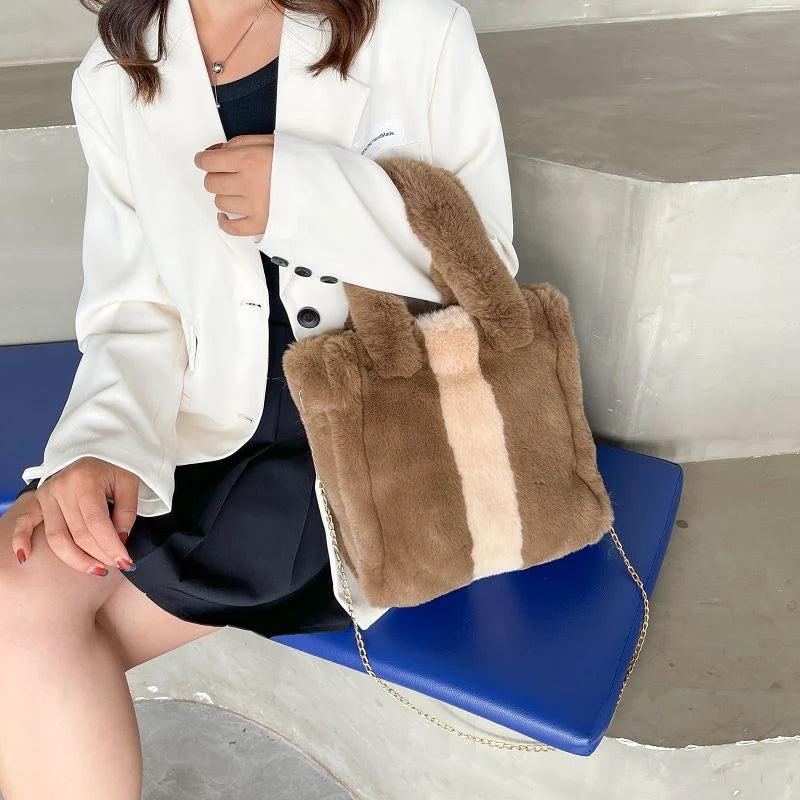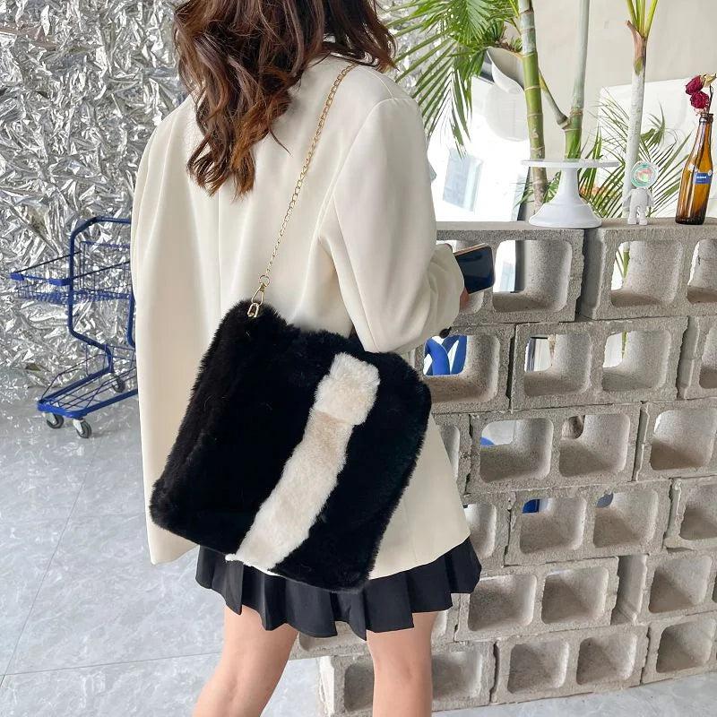Winter Faux Fur Chain Shoulder Bag Large Crossbody