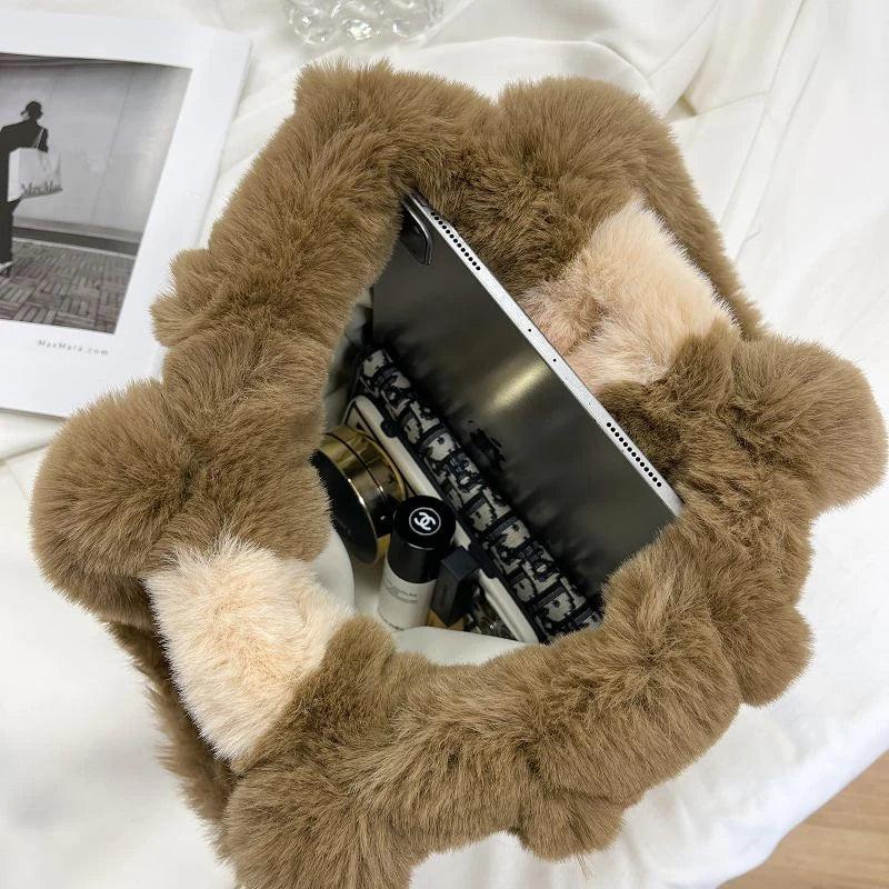 Stay stylish and cozy this winter with our faux fur chain shoulder bag. It offers a large capacity for all your essentials and can be worn as a crossbody for added convenience.
