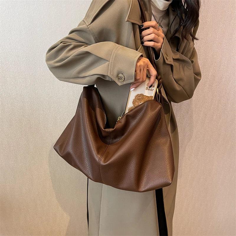 Winter Large Capacity Shoulder Bag For Women High PU Leather Shopper Handbag
