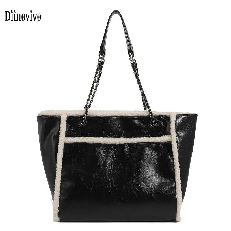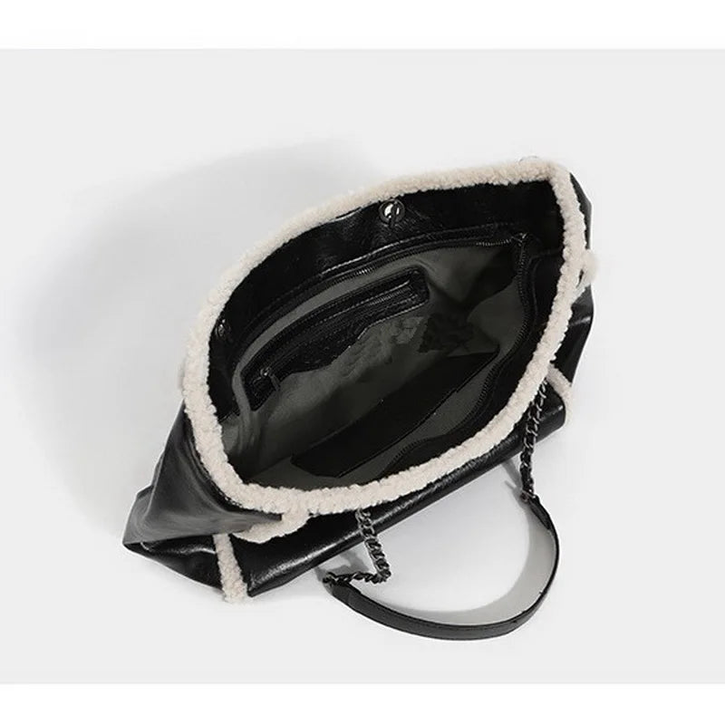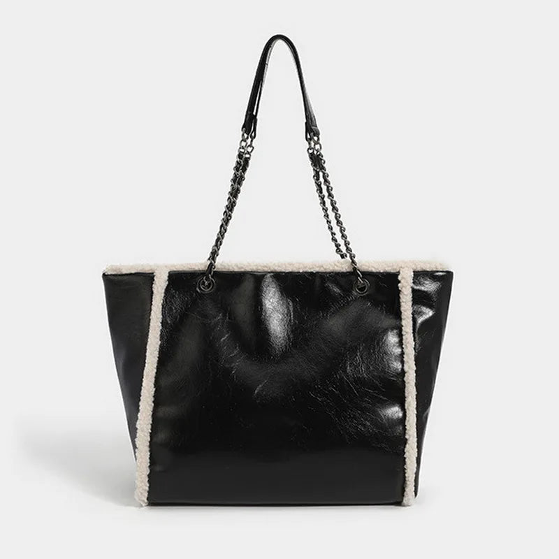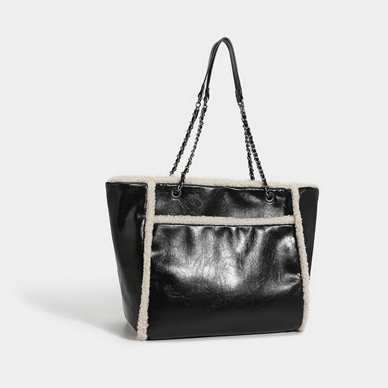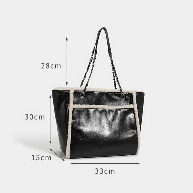 Winter Large Capacity Tote Bag Chain PU Leather Women Bags