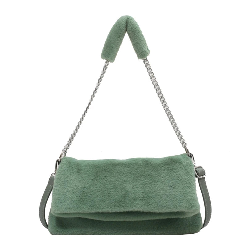 Stay stylish and cozy with this high plush shoulder bag. Perfect for winter, it's a must-have accessory for ladies.