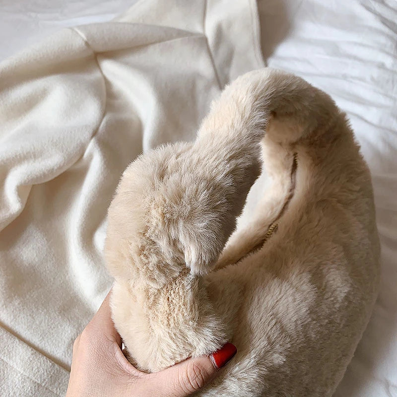 Stay trendy with this fashionable handbag designed for the winter season. The plush croissant style adds a unique touch to your outfit. Ideal for casual outings, this shoulder bag is perfect for girls.