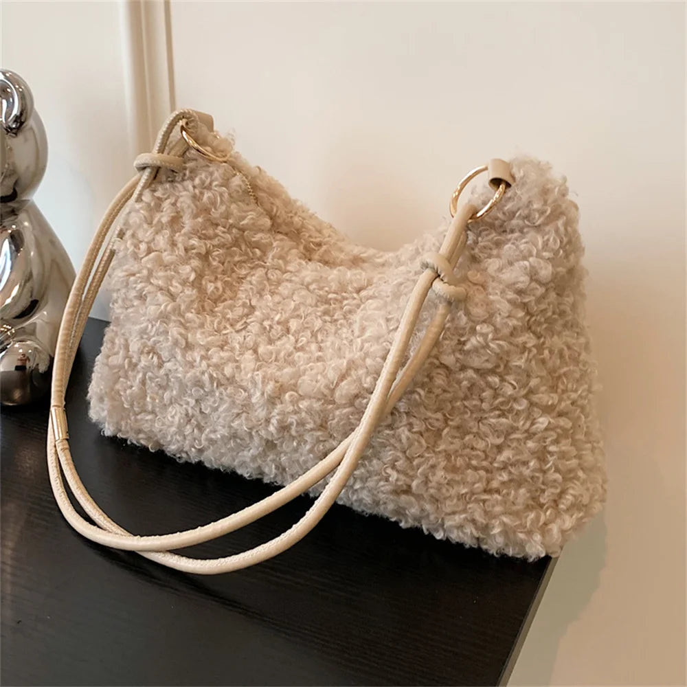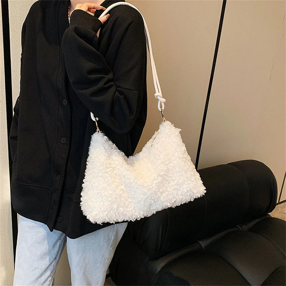 Winter Plush Crossbody Handbag Vegan Fur Small Shoulder Bag