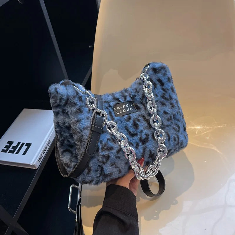 Winter Plush Faux Fur Small Crossbody Bags for Women Leopard Print
