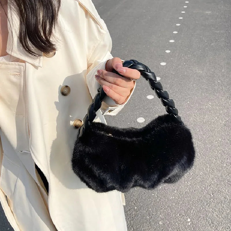 Winter Plush Handbags for Women - Casual Shoulder Bag
