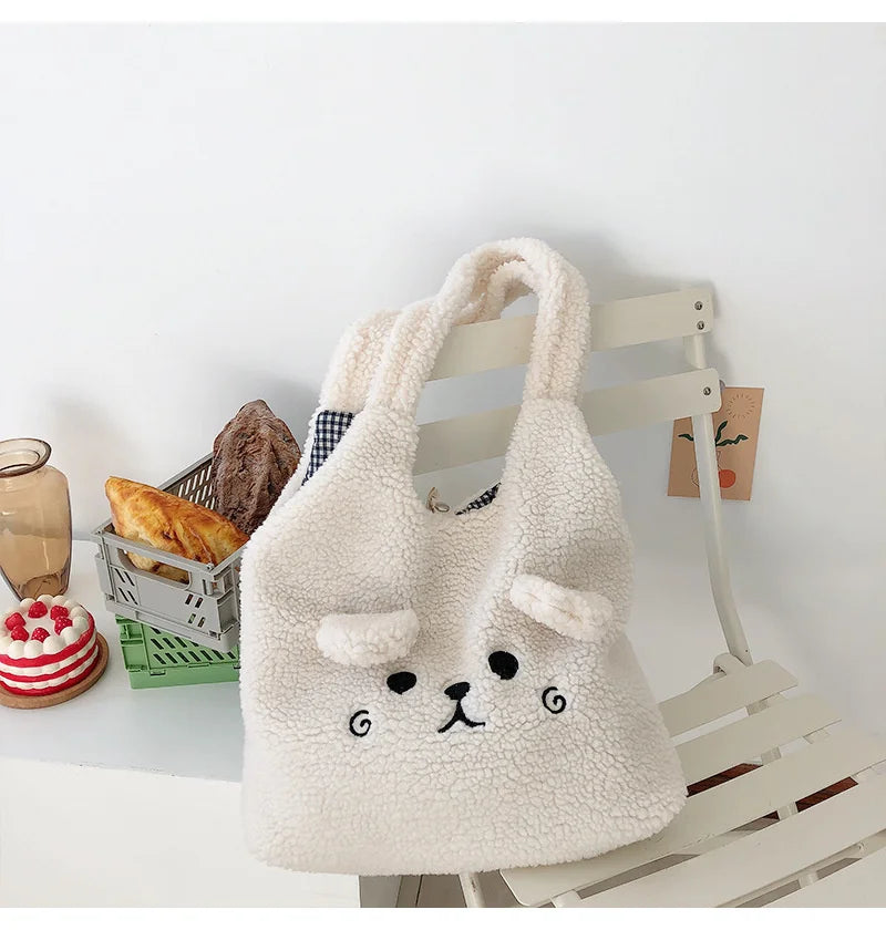 Stay warm and stylish this winter with our adorable plush tote bag featuring cartoon lamb hair. Perfect for carrying your essentials while adding a touch of cuteness to your outfit!
