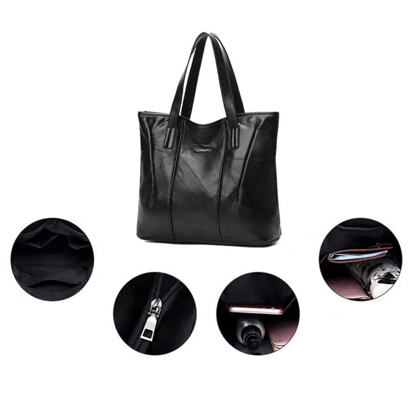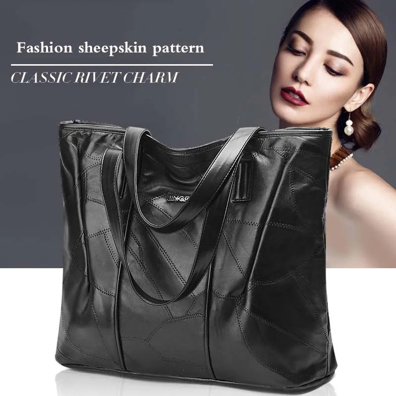 Winter Solid Sheepskin Retro Ladies Leather Large Capacity Handbags
