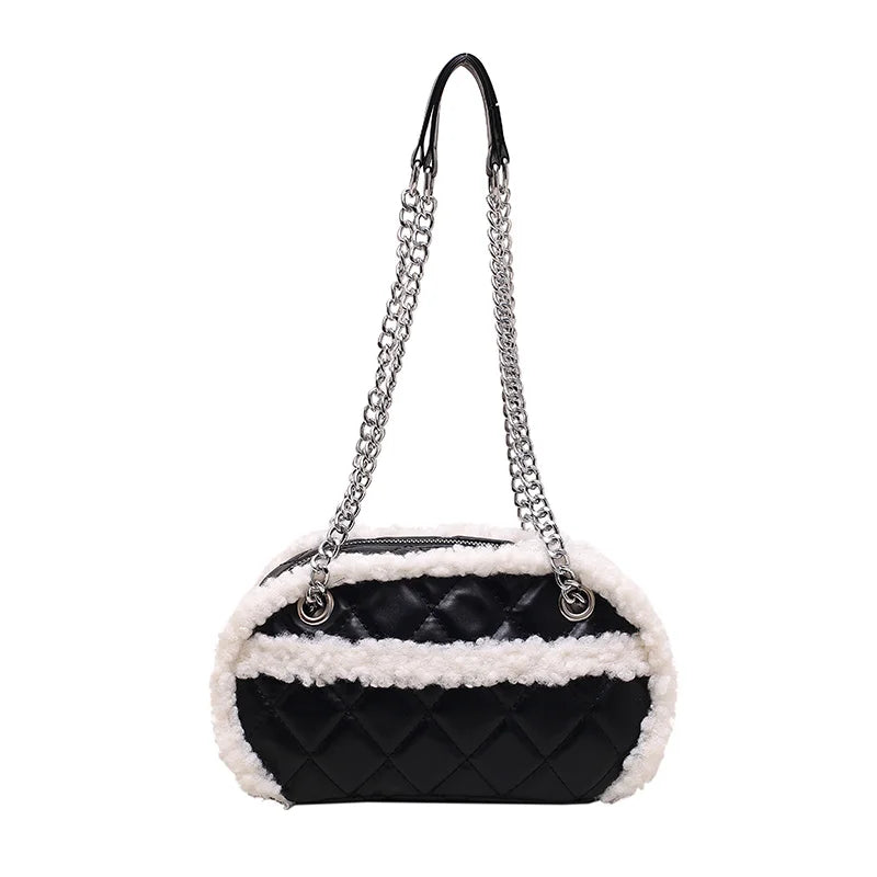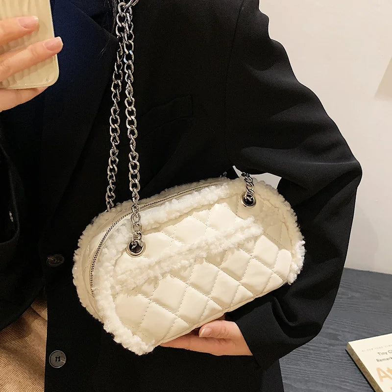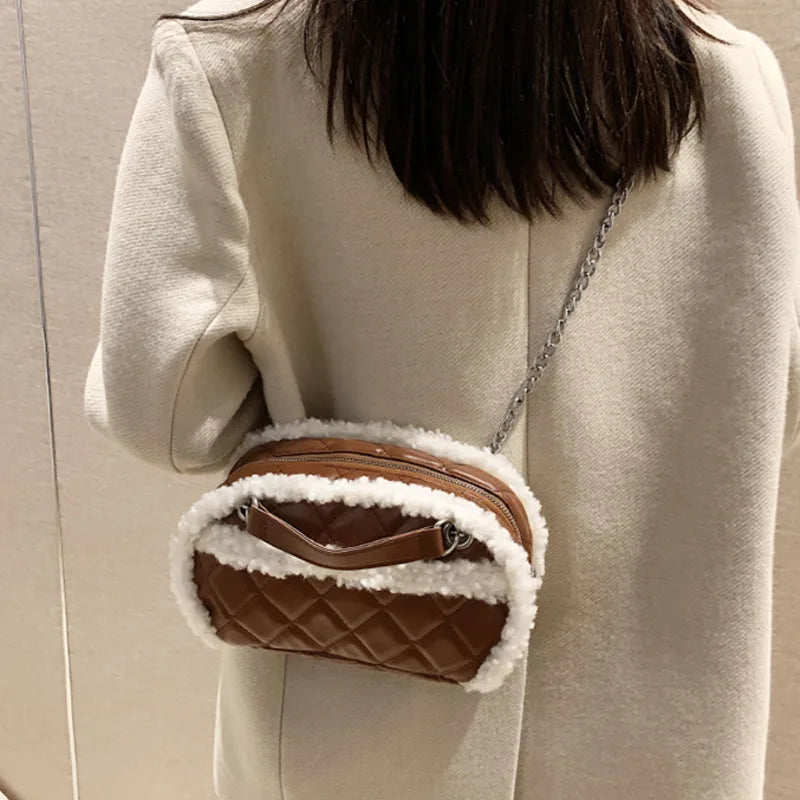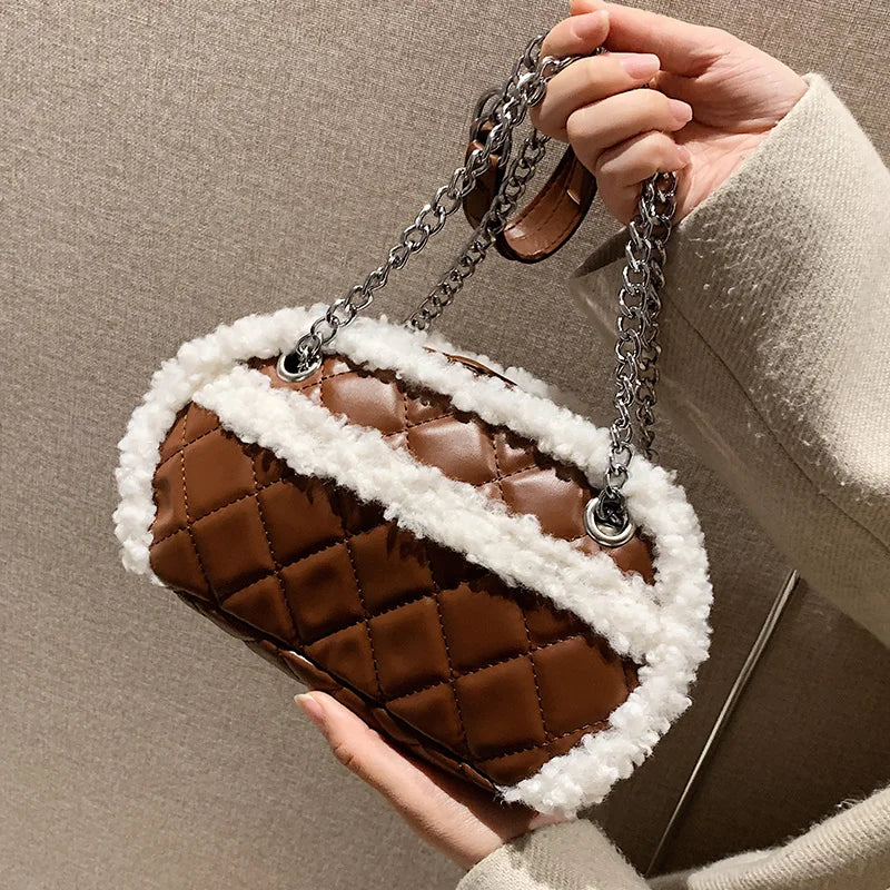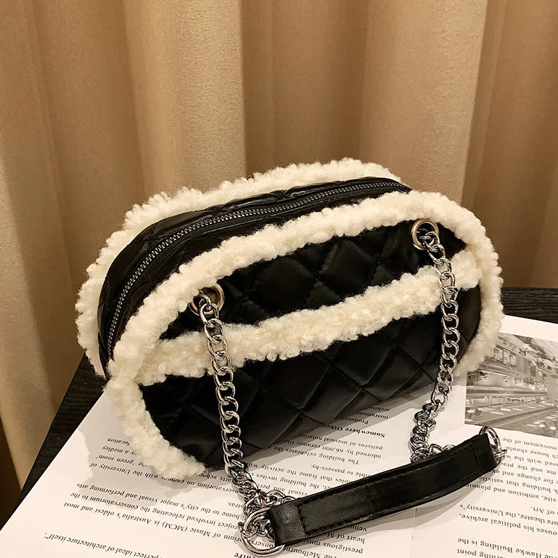 Winter Velvet Chain Shoulder Bag Small PU Leather Handbag