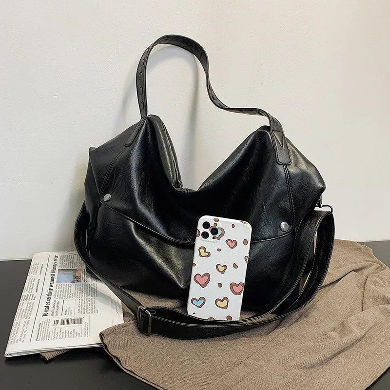Winter Vintage PU Leather Women's Shoulder Handbags Solid Large Hobo Bags