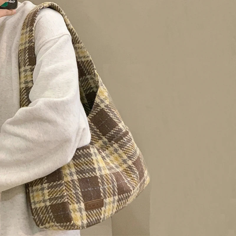 Winter Women's Casual Plaid Shoulder Bag Vintage Canvas Handbag