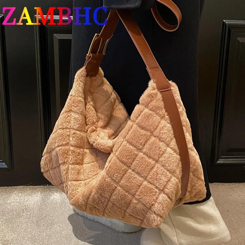 Stay stylish and cozy with this plush diamond lattice tote bag made of high-quality faux fur. Perfect for winter fashion.