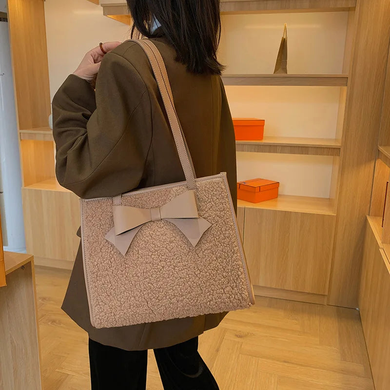 Stay stylish and cozy with this pure wool bow shoulder bag. Made of high-quality PU leather, it's perfect for winter fashion.