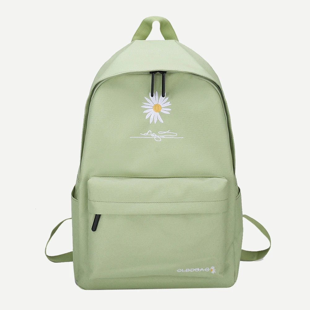 Women Backpack Daisy Embroidery Pattern Casual Shoulder Bag
