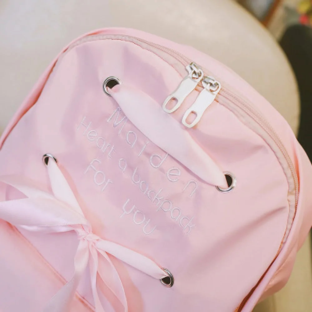 Women Backpack Lady Nylon School Backpack Fresh Bow Animal Pink