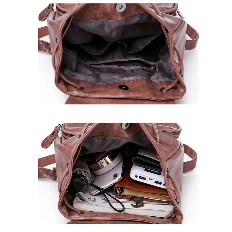 This PU leather women backpack combines preppy style with practicality. Perfect for school or casual wear.