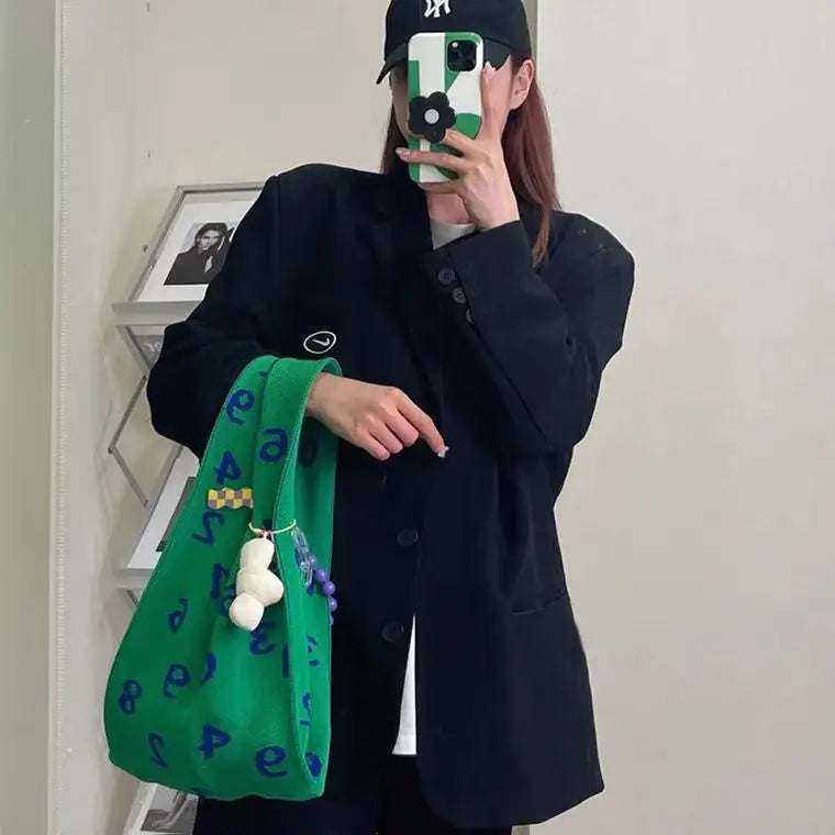 Women Bag Cotton Fabric Bucket Letter Solid Shoulder Bag