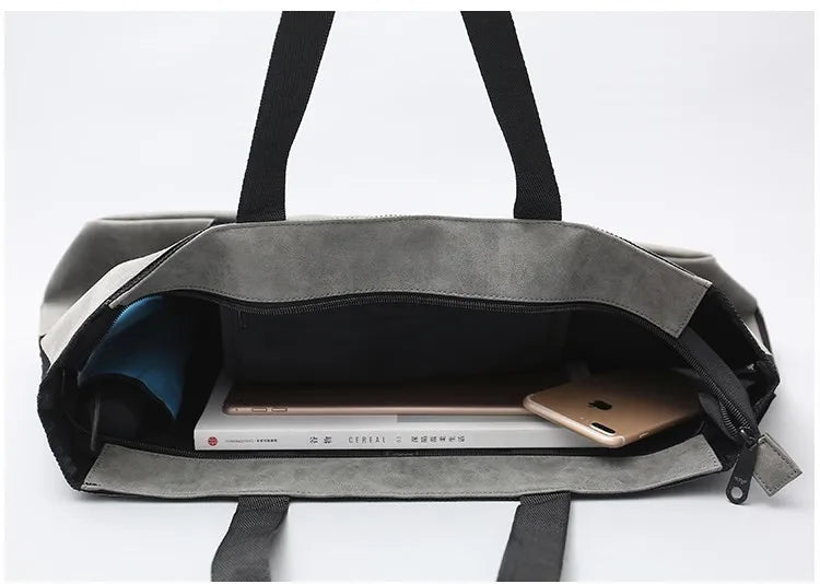 This women's handbag is made of PU leather with a suede finish, providing a retro and casual look. It has a large capacity suitable for travel and everyday use.