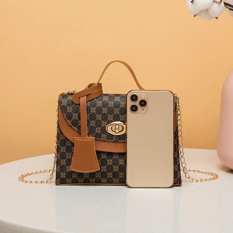 Upgrade your style with this trendy bag made of printed leather. It features a round lock design and is perfect for carrying your mobile phone and other essentials.