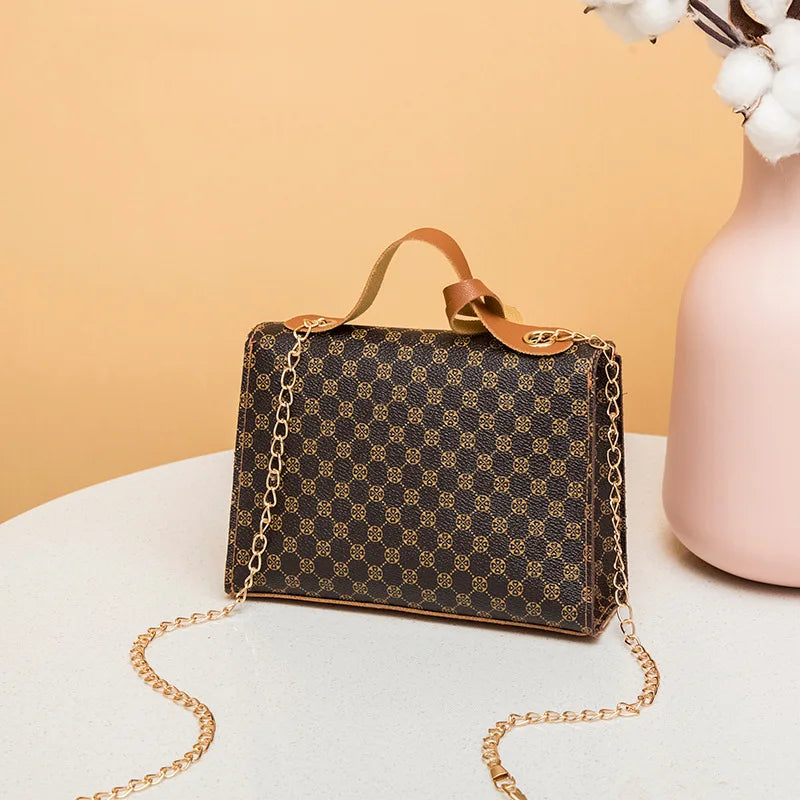 Women Bag Print Leather Round Lock Small Square Cross Body Bag