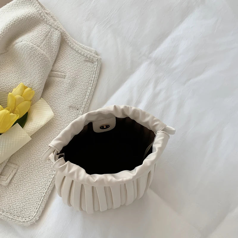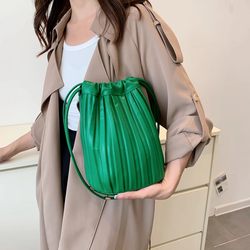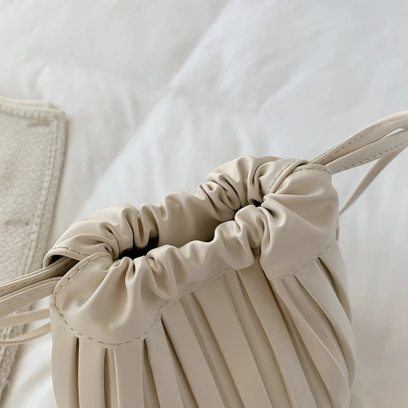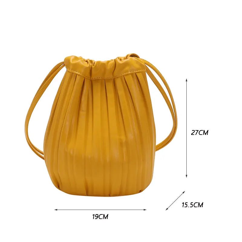 Women Bag PU Leather Handbag Pleated Pack Large Capacity Lady Shoulder Bags