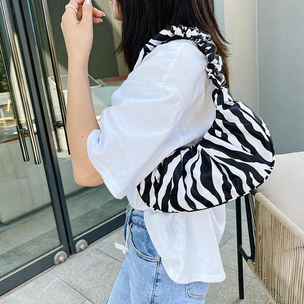 Women Bag PU Pleated Shoulder Animal Pattern Print Hobos Underarm Bags